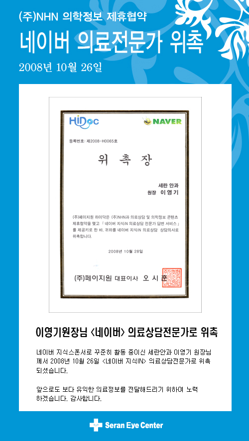 이영기 원장님 네이버 의료전문가 위촉 - 병원소식