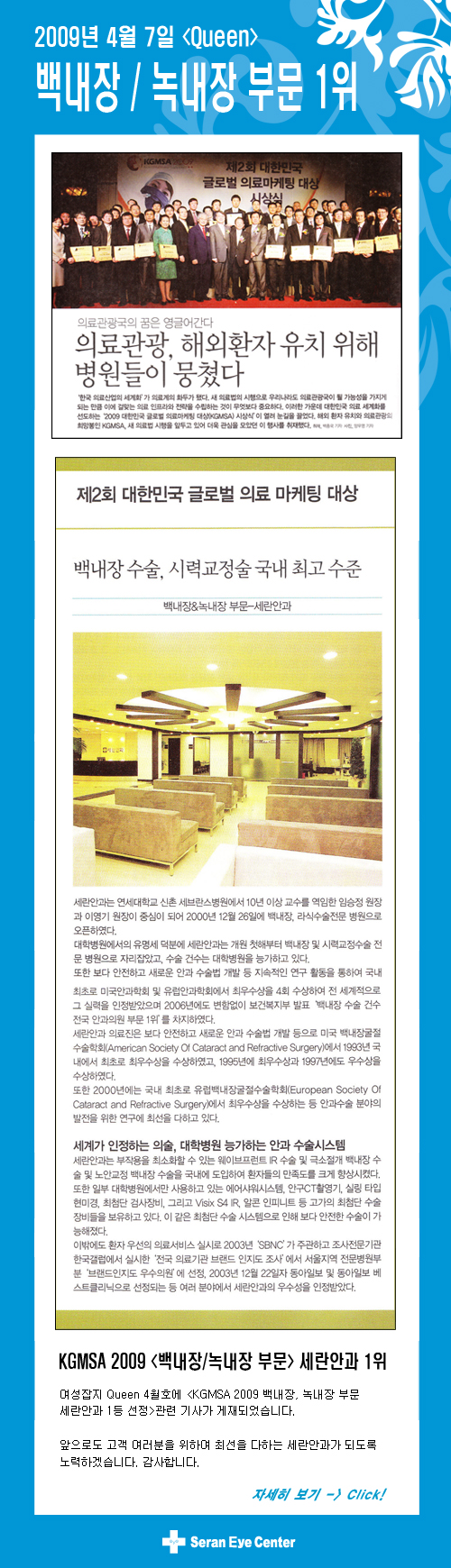 [QUEEN] KGMSA 세란안과 1위 기사 게재