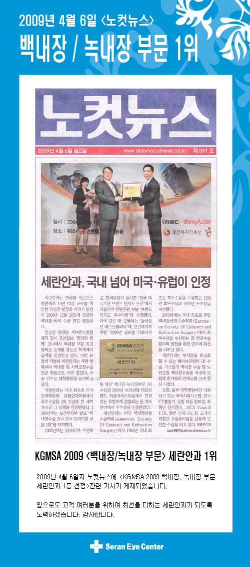[노컷뉴스] KGMSA 세란안과 1위 기사 게재 - 병원소식