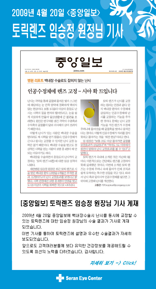 [조선일보]토릭렌즈 임승정 원장님 기사 게재 - 병원소식