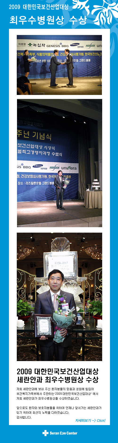 2009 대한민국보건산업대상 최우수병원상 수상 - 병원소식