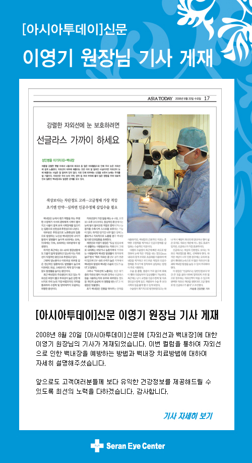 [아시아투데이] 이영기 원장님 기사 게재 - 병원소식