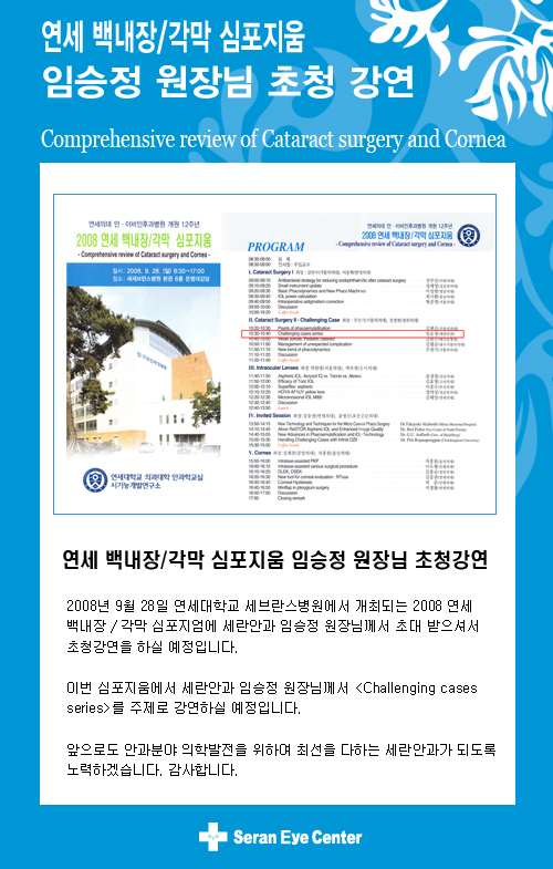 [연세 백내장/각막 심포지움] 임승정 원장님 초청강연 - 병원소식