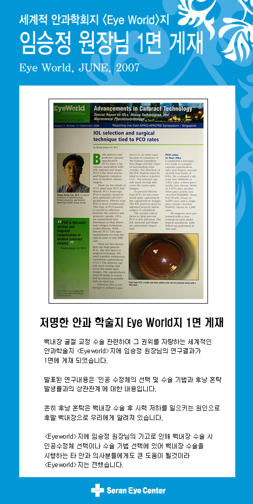 [Eyeworld]지 임승정 원장님 연구발표 1면 게재 - 병원소식