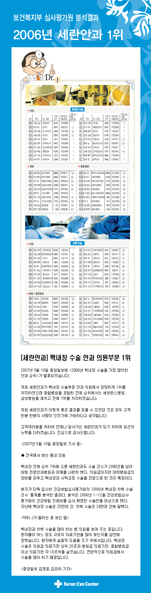 [보건복지부] 2006년 백내장 수술건수 안과 의원부문 1위 - 병원소식