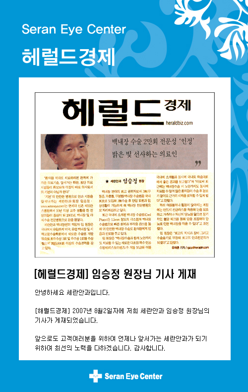 [해럴드경제] 임승정원장님 기사 게재 - 병원소식