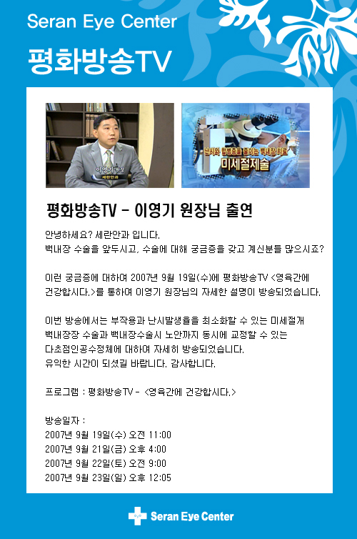 [평화방송TV] 9월 19일 이영기 원장님 출연 - 병원소식