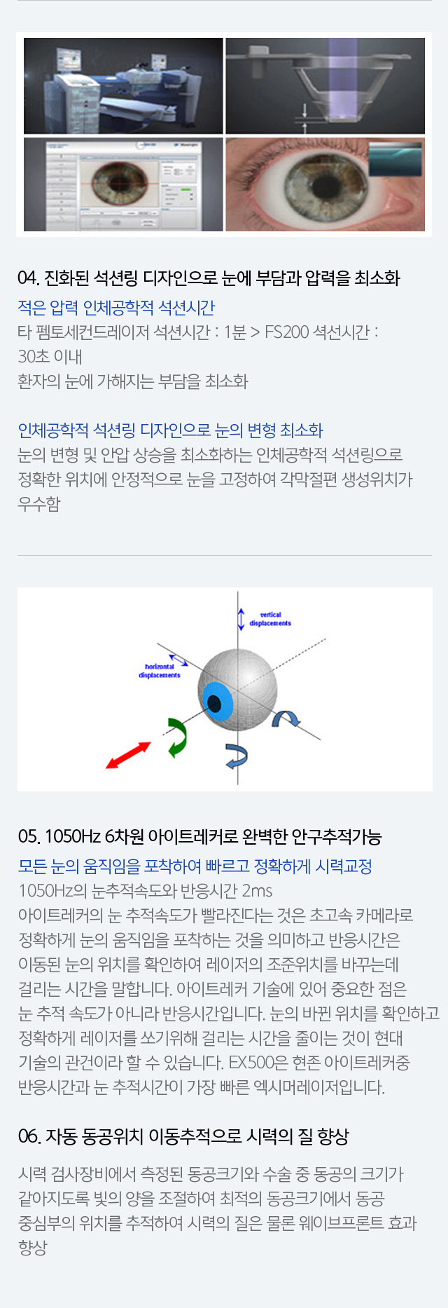 모든 눈의 움직임을 포착하여 빠르고 정확하게 시력교정1050Hz의 눈추적속도와 반응시간 2ms